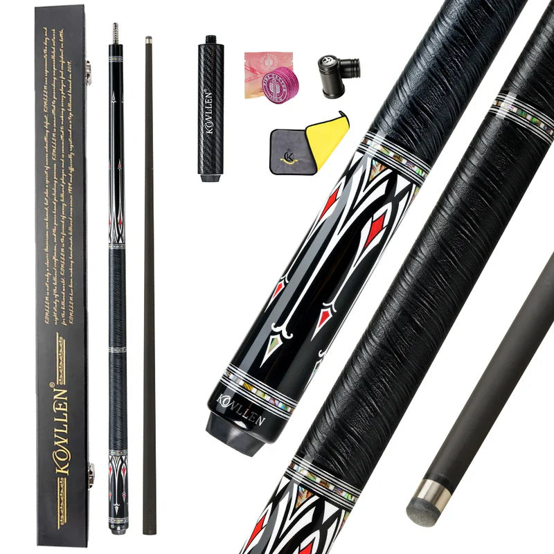 KONLLEN Carbon Fiber All Inlay Pool Cue Stick Leather Wrap Black Technology Low Deflection Billiard,10.5,11.5,12.5mm,147cm,AS-2F