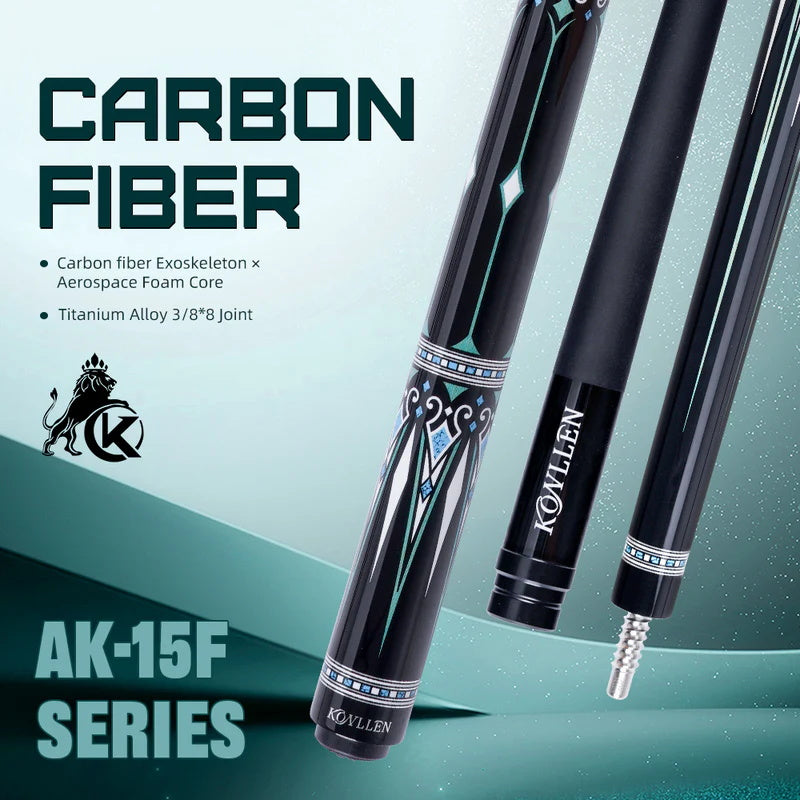 KONLLEN AK-15WBF Series Carbon Fiber Pool Cue Stick Professional Cues Leather Wrap/Wrapless Full Carbon Technology Low Deflection Billiard Cue Stick 147cm 12.5mm Tip