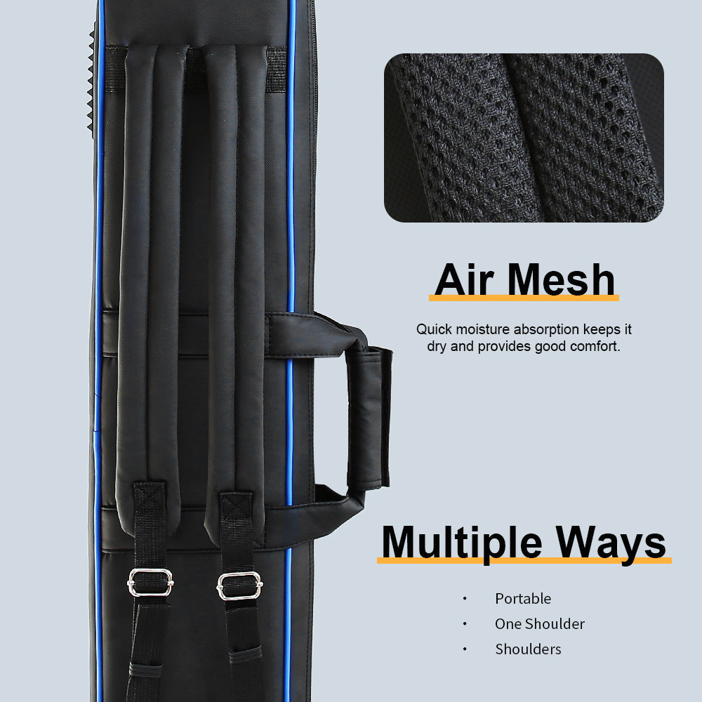 Dedicated Accessory Storage: Features two front pouches for tips, chalk, gloves, and other essentials, plus specialized extension/butt storage for added convenience.